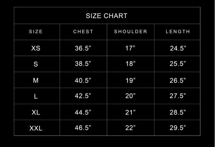 Refer to this size chart before you order since we don't offer replacements based on sizing issues.